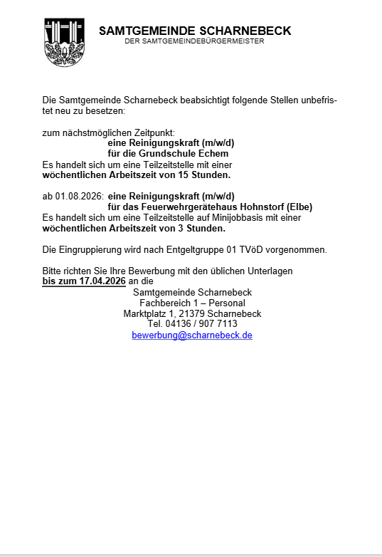 Home » Stellenausschreibung Samtgemeinde Scharnebeck